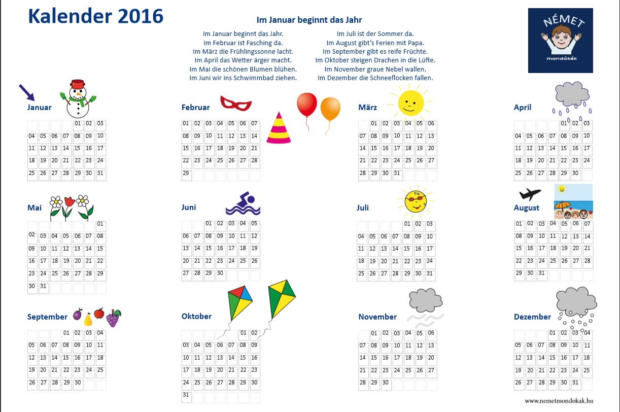 Naptár 2016 - Kalender 2016